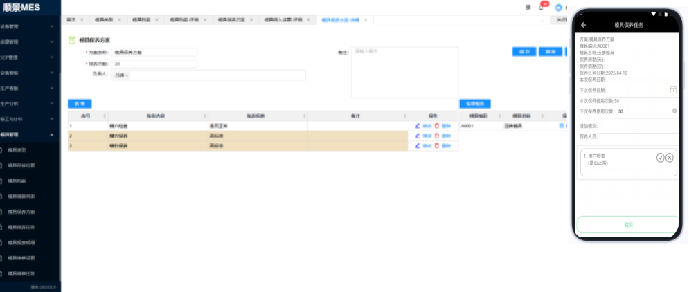 系統可根據預設的模具保養周期或剩余使用壽命門自動觸發保養任務提醒。