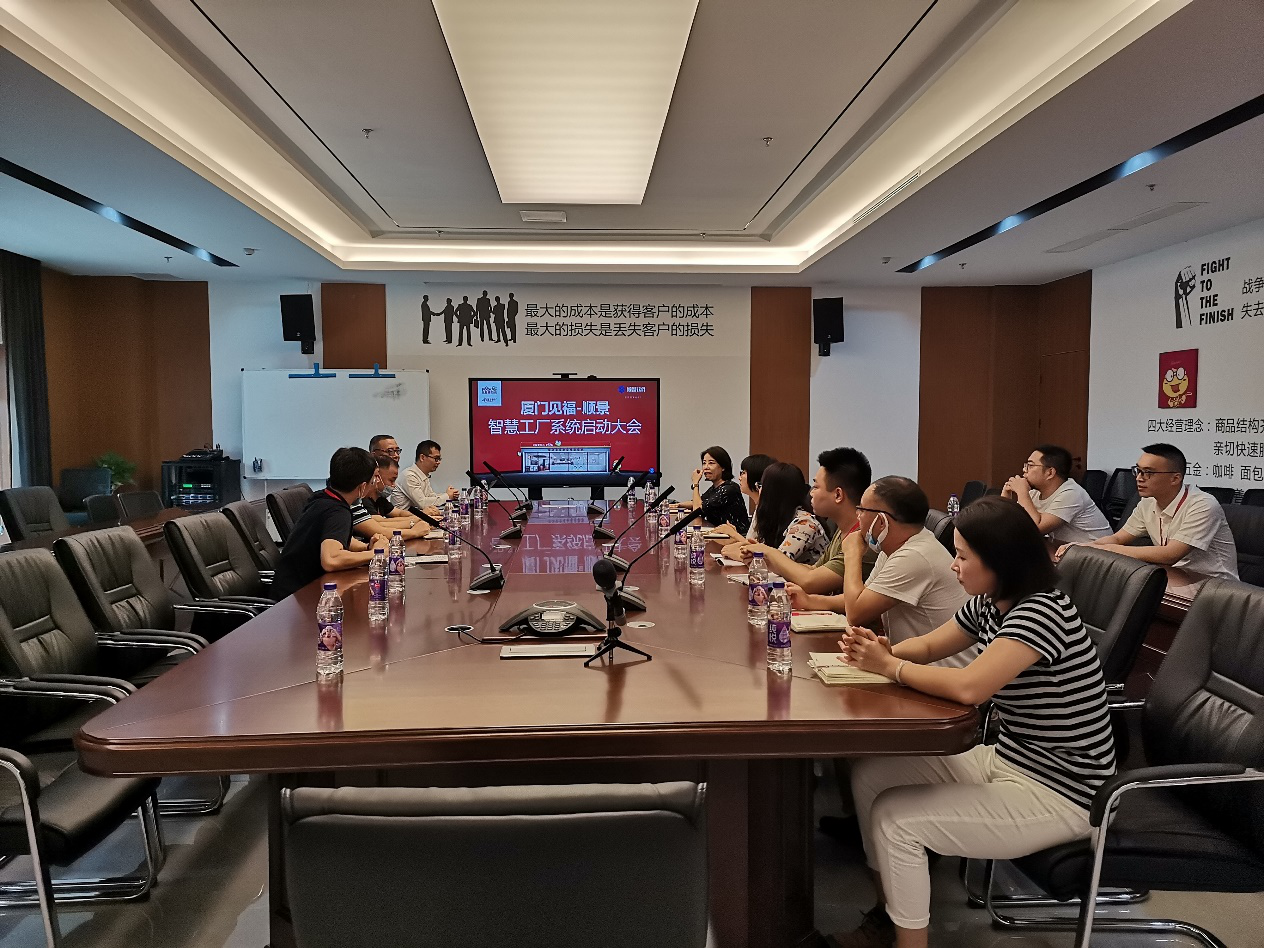 以前瞻視覺 發現并布局未來廈門見福連鎖管理有限公司攜手順景軟件智造升級,2020年8月10日,雙方共同舉行了智能智造項目啟動大會。見福副董事長于興軍、烘焙廠總經理楊偉藝、特助周志強及各部門主管,順景軟件李江謀,項目經理覃君毅及雙方項目實施團隊成員共同出席了本次啟動會。