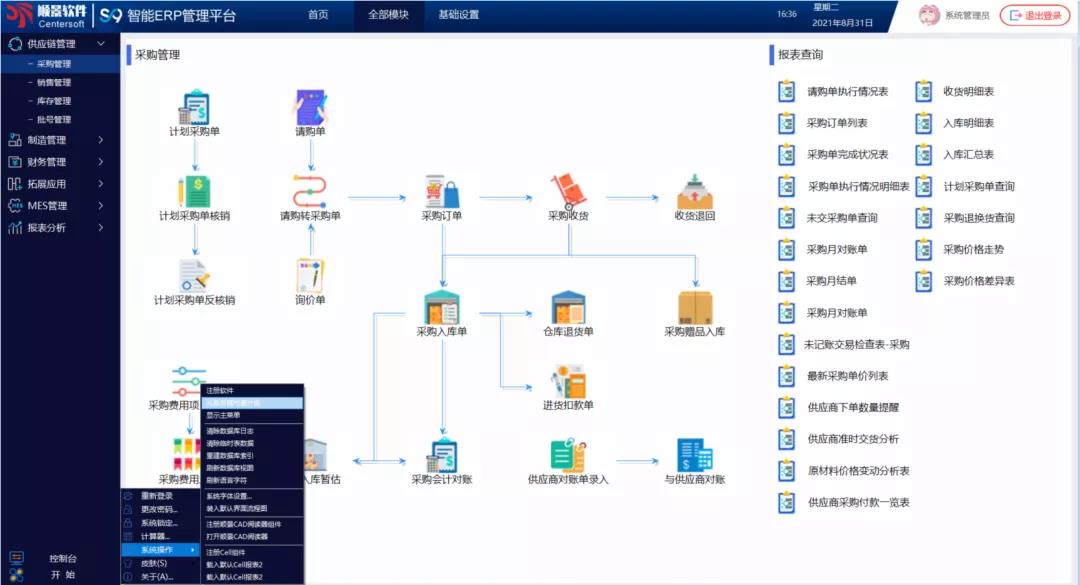 - 順景S9智能ERP系統(tǒng),進(jìn)行全新的布局優(yōu)化,分為「供應(yīng)鏈管理」、「制造管理」、「財(cái)務(wù)管理」、「拓展應(yīng)用」、「MES管理」、「APS管理」六大應(yīng)用模組