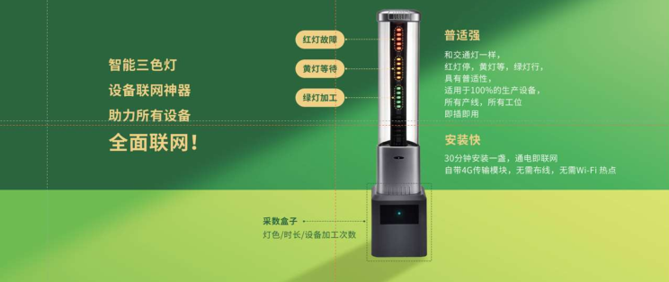 “物聯網智能終端”解決設備聯網難的問題,快速聯網所有設備。順景智造數字化系統適配的三色燈適用于100%生產設備,所有生產設備實現全面聯網。