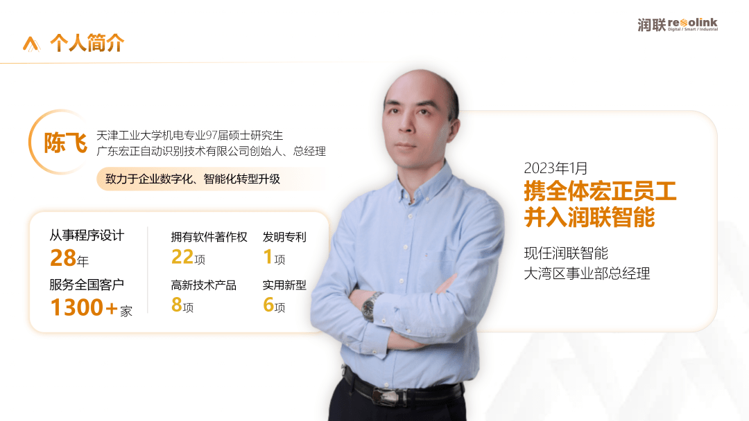 潤(rùn)聯(lián)智能科技股份有限公司大灣區(qū)事業(yè)部總經(jīng)理陳飛介紹了潤(rùn)聯(lián)智能作為智能工廠規(guī)劃及實(shí)施方的客戶案例及經(jīng)驗(yàn)。